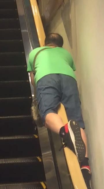 ▲綠衣男用百貨公司手扶梯摩擦下體。(圖/翻攝爆料公社, 2018.10.08)
