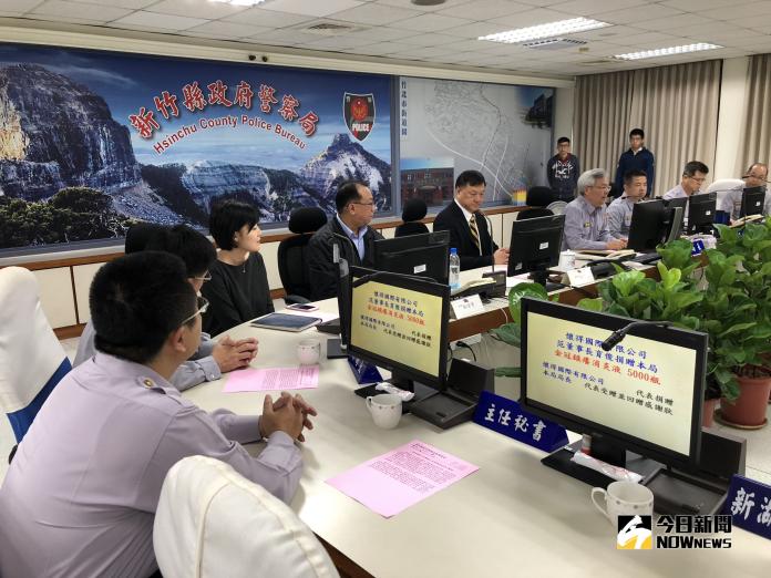 ▲企業致贈5千瓶消炎液給新竹縣警察局,在擴大主管會議中舉行頒贈儀式。(圖/記者誾宣震攝,2018.10.17)