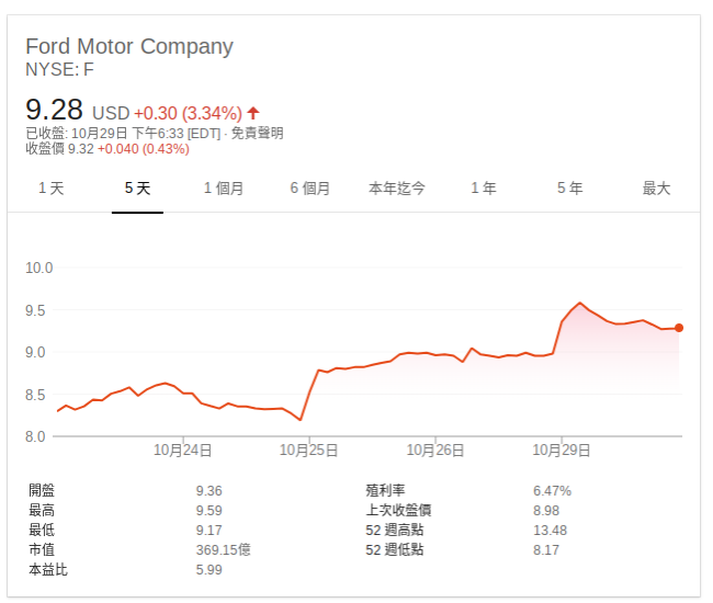 高盛調升福特 (F-US) 評級,自中立上升至買進,目標價 12 美元,隱含漲幅 30%。