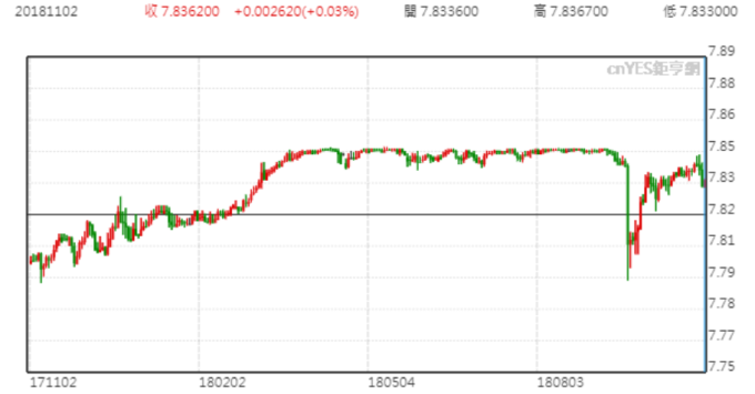 港幣最新報 7.8362 兌 1 美元,或 + 0.03%。