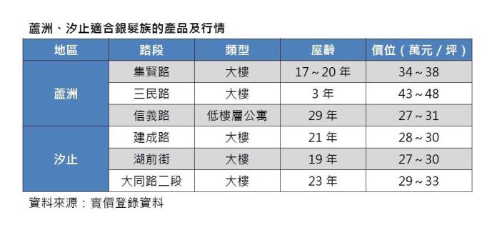 除居住環境外,蘆洲與汐止房價親民,也是吸引銀髮族入住的關鍵點。陳帝嘉表示,若以總價落在1500萬至2000萬元之間,在士林區買到的是35至40年公寓,但同樣價格可在蘆洲買到屋齡20年3房含車位的電梯大樓,對不適宜爬過多樓梯的銀髮族而言是換屋的優先選擇。