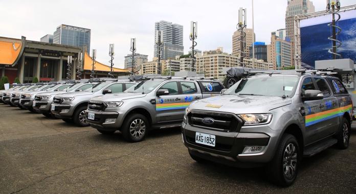 ▲中華電信最新增購的10台第五代救災搶修車,相當於20座移動式基地臺的能量,將配置到全台北、中、南及離島的金門。(圖/中華電信提供)