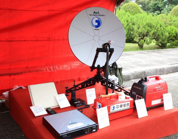 ▲啟用典禮現場還展示中華電信的防救災設備:衛星電話、可攜式衛星天線、無線電對講機、微波、防爆油桶、小型發電機、鋰鐵電池等,防救災通訊設備一應俱全。(圖/中華電信提供)