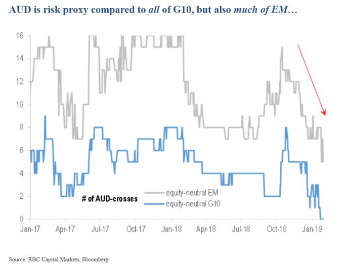 RBC 外匯分析師 Elsa Lignos 在報告中寫道:「目前澳幣幾乎有 70% 的功用可以拿來作為新興市場貨幣的風險指標,而其中的原因就是因為大部分風險來自中國經濟。」