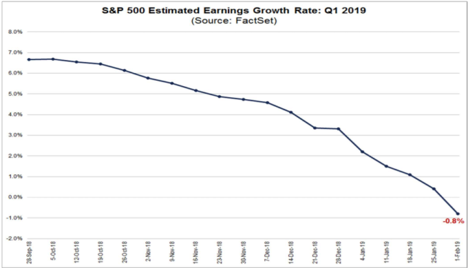 華爾街分析師正在大幅削減 2019 年第 1 季的獲利預期,因此對該期間獲利成長的總體預期變為負面。FactSet 的數據顯示,預計獲利平均下降 0.8%,這與 9 月當時分析師認為將成長近 7% 的獲利預期相比有所逆轉。在抱怨低落的企業展望同時也伴隨著強勁的第 4 季數據。