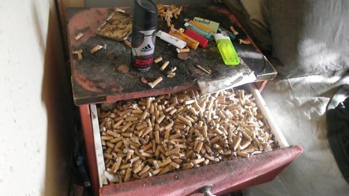 ▲抽屜中塞了滿滿的菸頭。(圖/翻攝自西南新聞社)