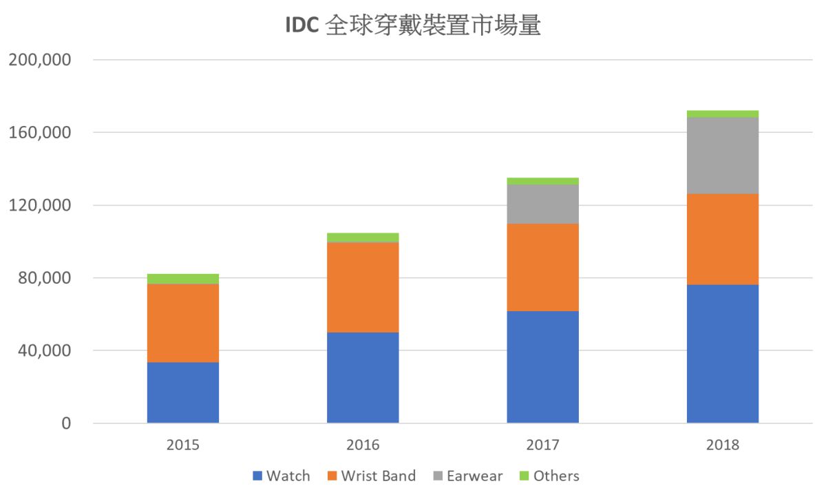 根據IDC最新全球穿戴裝置市場(Wearable Device)調查報告顯示,統計2018年全球穿戴裝置出貨數字攀升至1.7億台,年對年成長27.5%,主要的成長力道來自於市占近25%耳戴式裝置的增長。IDC預期未來三年全球穿戴裝置仍能維持每年10%以上的正成長趨勢。
