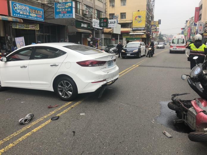 事故現場一片凌亂,除了有汽機車的碎片外還有油漬,警消獲報到場後隨即指揮交通並協助2名機車騎士送醫急救。警方初步調查後表示,疑似是駕駛誤把油門當作煞車猛踩,才會突然整輛車衝向馬路釀禍。