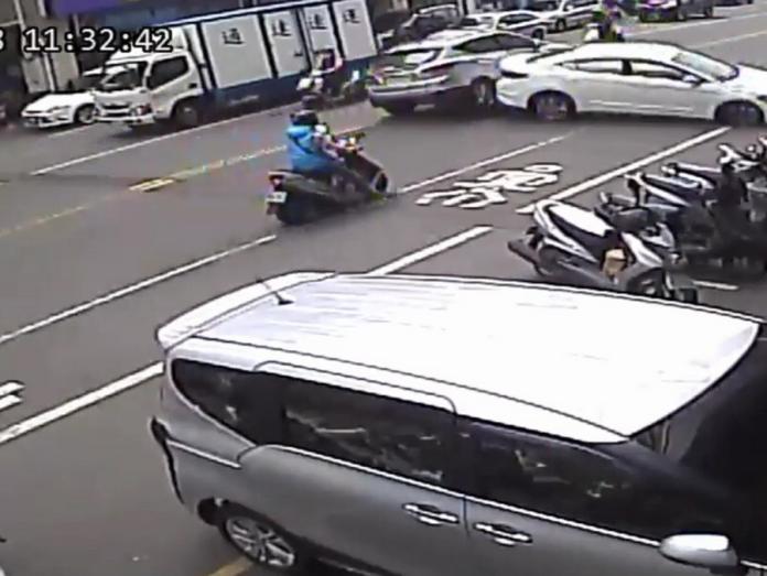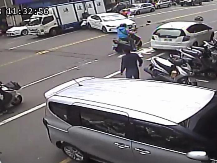 警方調查,白色轎車在彰化市中正路二段的騎樓來回倒車,準備開到大馬路上,不過突然間整台車失控衝到大馬路上,導致當時行經該路段的汽、機車閃避不及,當場被撞上。其中一名騎士最慘,先是被轎車往後撞,接著又被來不及閃避的後方休旅車往前推,當場被「夾壓」後再彈飛墜地,而對向的另一名機車騎士則直接遭白車往後撞,人車被「撞壓」在白車和停放路邊的小貨車間。