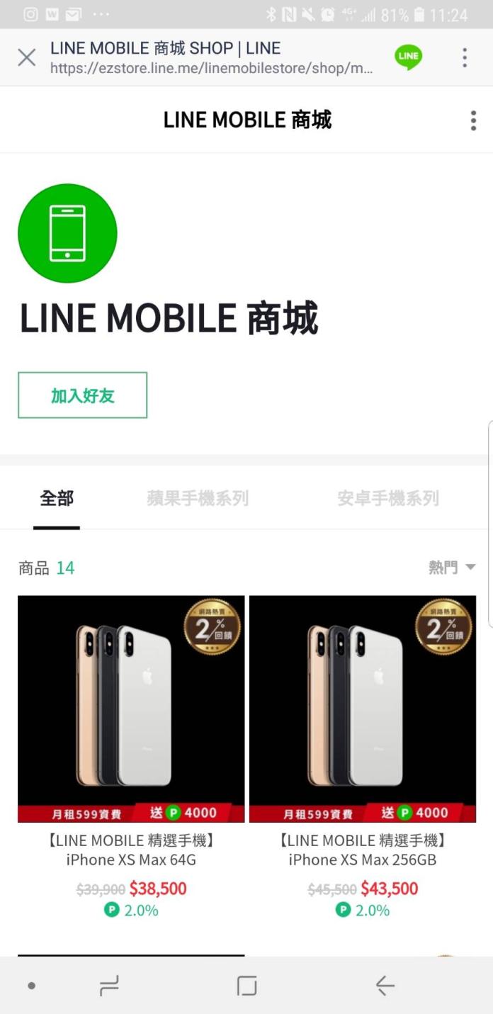 ▲LINE MOBILE商城手機介面如上圖。(圖/翻攝LINE APP)