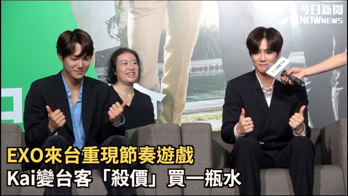 節目中,Suho坐在卡丁車上睡著,問起這荒謬的舉動,他笑說:「因為很累...戴上安全帽後很安靜。」主持人Lulu提到去年11月赴高雄、墾丁拍攝,有沒有學到台語?2位坦言忘光,她立即教學「我好餓」,Suho、Kai也現學現賣,Kai表示想知道「殺價」的台語怎麼說,現場立刻演起情境劇,當Lulu遞上「一瓶100元的礦泉水」後,他立刻回:「算便宜一點!」甚至表示下次來台會找成員一起講「水喔」,道地口腔笑翻全場。