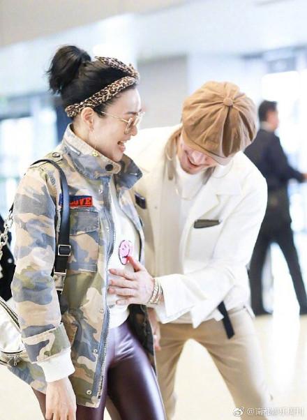 ▲鍾麗緹夫婦以俏皮舉動否認懷孕傳聞。(圖 / 翻攝微博)