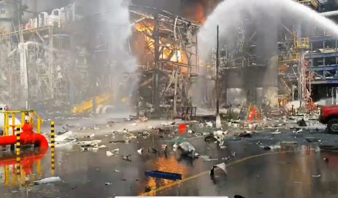 雲林縣消防局表示,下午2點4分接獲報案,麥寮六輕工業區台化芳香烴三廠發生爆炸,立即派遣麥寮、北五、台西、東勢分隊人、車前往搶救,25分到達時已明顯見到火光冒出,初步了解是液化石油氣管線破裂,目前尚無人員傷亡傳出。