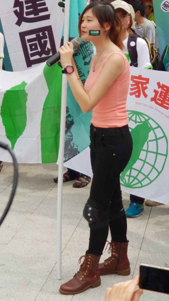 ▲長庚大學張姓女大生穿著護膝南下台中,準備和統促會大幹一場,但統促會臨時喊卡,她只好發表演講(圖/記者鄧力軍攝, 2019.04.13)