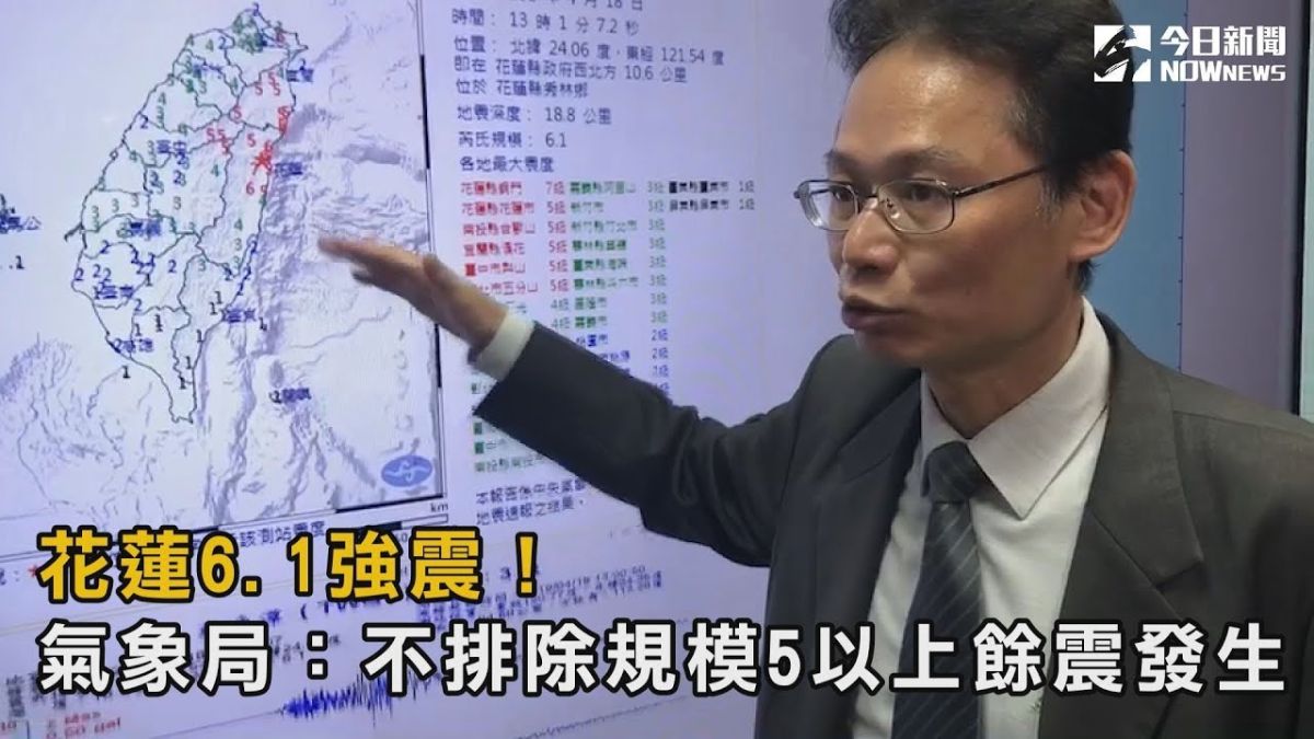 花蓮縣秀林鄉今( 18 )日 13:01 發生芮氏規模 6.1 地震,最大震度花蓮銅門 7 級,台北市、新北市也有 4 級震度,氣象局地震測報中心主任陳國昌指出,這是今年規模超過 6 的地震,未來一周不排除有規模 5 以上餘震發生。