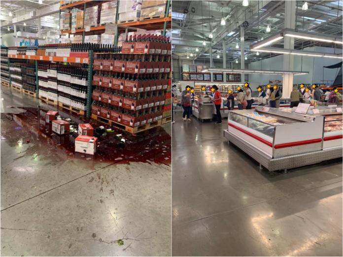 花蓮縣秀林鄉今( 18 )日中午 1 點 01 分,發生規模 6.1 地震,最大震度 7 級,不僅出現山崩,台北市更多處大樓傾斜,災情不斷。不過,新北市的美式連鎖賣場好市多( COSTCO )中和店卻出現驚人景象,強震一晃時,貨架上的酒瓶掉落碎裂,紅酒灑了滿地,但一旁的民眾並未驚慌竄逃,反而淡定地繼續排隊等試吃,讓網友看了直呼:「震不走的試吃決心!」