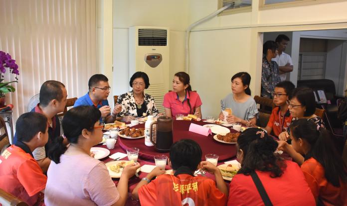 3日上午也如約定在縣長公館,王惠美與平和國小曲棍球小選手們以及教職團隊成員一起享用精心準備的早餐以及在地生產的新鮮鮮奶,讓小選手們補充營養,放鬆比賽心情,並分享比賽心得。