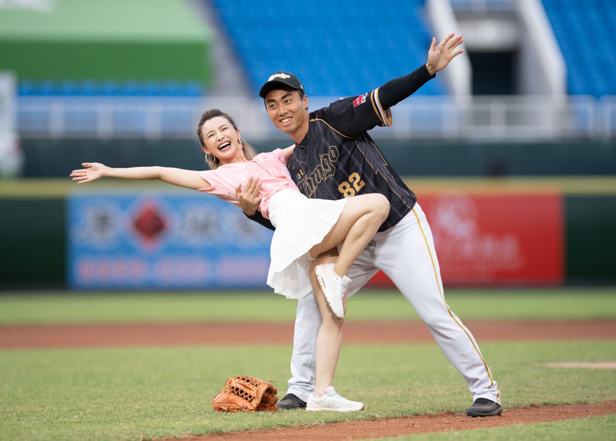 她說開球之前排練「旋轉之舞」,與他搭配的黃敬瑋實在是太靦腆,還開玩笑表示:「他真的很害羞,害羞到忍不住想打他。」吳婉君表示自己今天打扮比較像啦啦隊,希望可以為桃猿帶來好運。