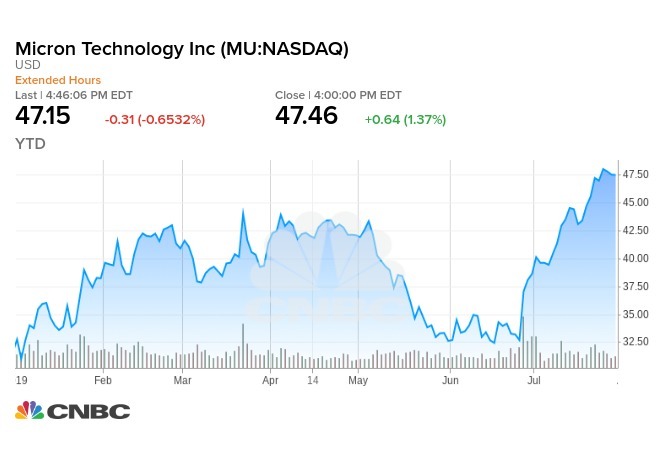 美光是 DRAM 和 NAND 半導體市場的領導廠商,因晶片價格預期回升,美光股價今年迄今已上漲 45% 以上。