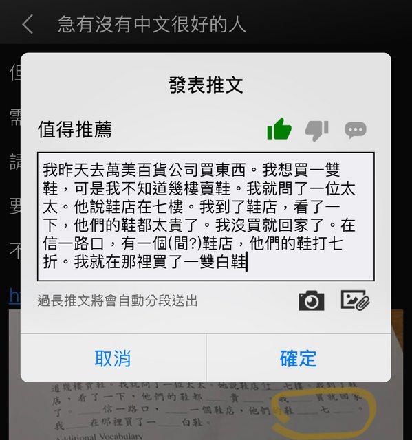 日前批踢踢八卦版上有一名網友發文表示,自己的外國朋友傳來了中文作業想求助,但他直言自己的中文不太好,希望能透過廣大鄉民的聰明智慧找出正解,語畢便貼上一張照片,裡頭圈起的部分就是外國朋友苦惱的問題。