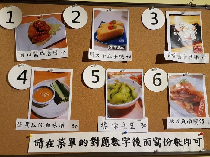 「水沐食堂」掌廚的師傅,是一位來自日本的年輕人,他是大廚,也是老闆,來台灣兩年多,開這家店也有一年半的時間。由於他還不太會說中文,所以特地在點餐區旁邊掛一塊告示牌,提醒客人與他溝通點餐,請用不同顏色的點餐單,外帶是黃色的,內用則是粉紅色的。