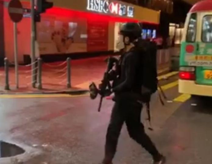 據香港媒體報導,當時有警察身穿代表示威者的黑色上衣,混入人群中被識破,遭到示威者團團包圍,當時警察向天空開了兩槍,並在現場留下子彈殻。香港警察公共關係科高級警司余鎧均在深夜的記者會中,證實此事。余鎧均指出,當時「暴徒」挑釁及衝擊其中幾名喬裝示威者的警察,並試圖搶奪警察手機,引起拉扯,之後甚至試圖搶槍,警方才會在晚間 9 點時,向天空開了兩槍。