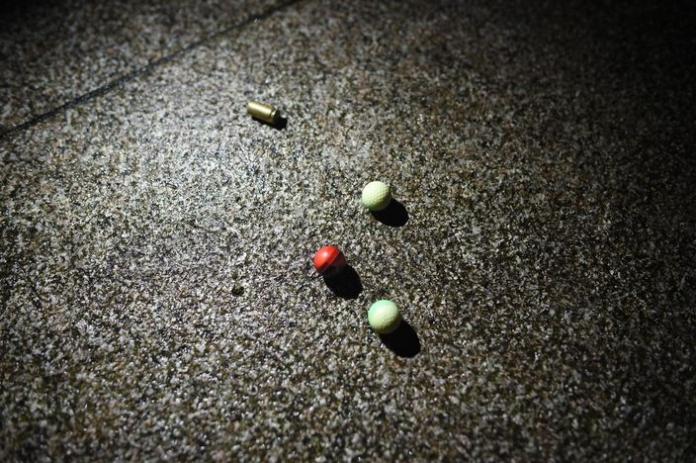 ▲喬裝成示威者的警察被識破後,朝天空開槍,現場遺留彈殼。(圖/翻攝巴士的報)