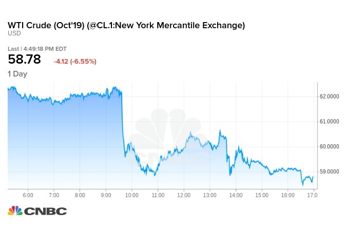 - 10 月交割的 WTI 原油期貨價格下跌 3.56 美元或 5.7%,收每桶 59.34 美元。