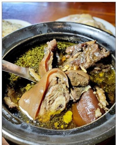 令許多人聞香而至的「招牌燻羊肉」,選用的是大概兩年半左右的羊肉來料理,鍋內的羊肉部位齊全而且份量十足,嚐起來相當地痛快,我個人很喜歡肉五花與羊排肉的位置,帶皮的滋味其實也很不錯。