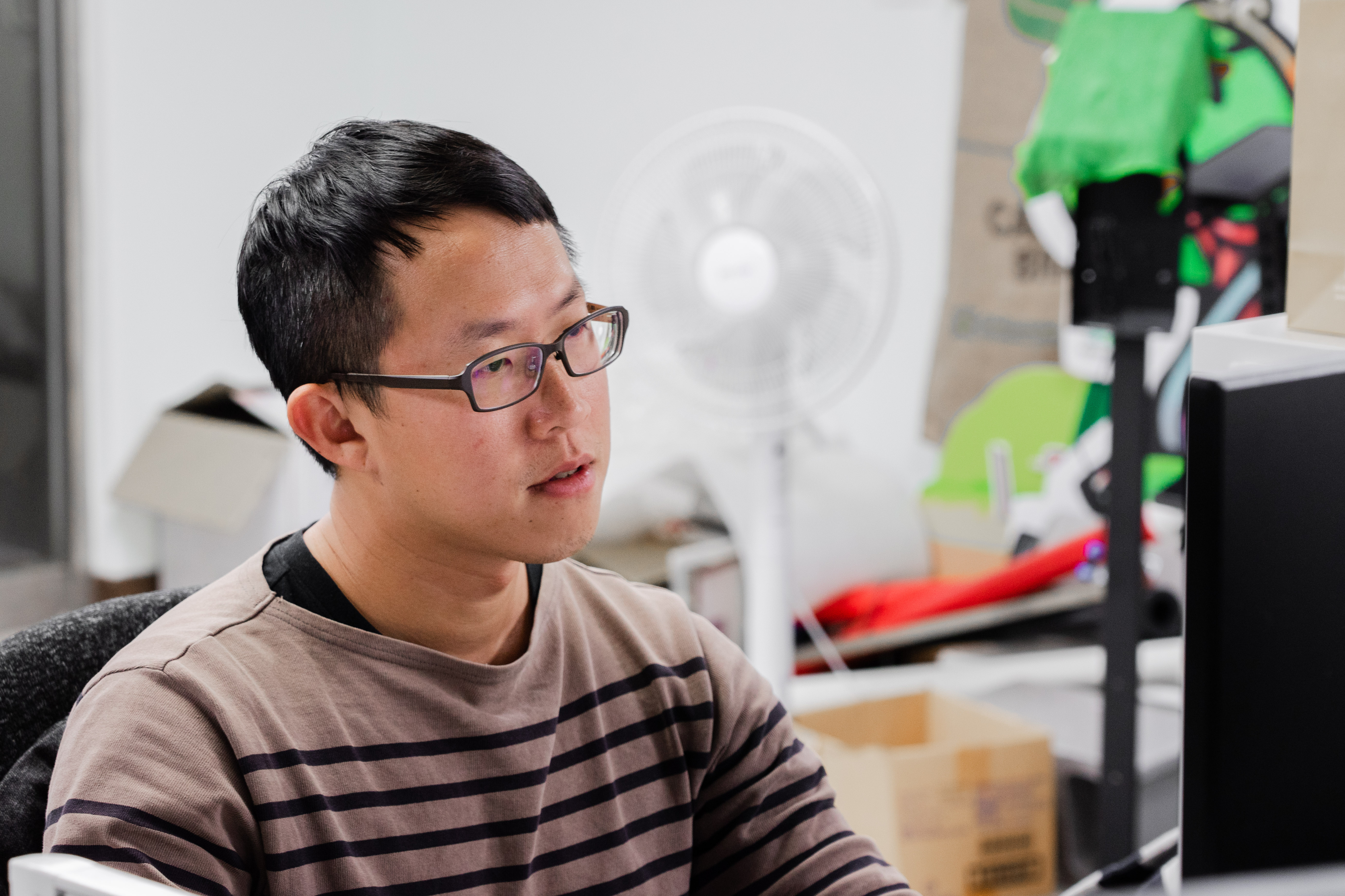 阿龜微氣候共同創辦人兼行銷長盧安邦平時工作都在電腦前進行,藉由與農民、農業專家溝通,協助農民解決問題。 (圖/攝影 林琮恩) 而近幾年食安事件四起,使食品安全議題備受關注,也促使產銷履歷興起。農民將栽種過程透明化,提升消費者對農產品的信任。輔仁大學餐旅管理學系講師、食安專家文長安說:「消費者有知的權利,這些數據可以幫助消費者或廠商溯源,往上知道種植過程中使用的農藥種類、往下知道購買的通路等。」