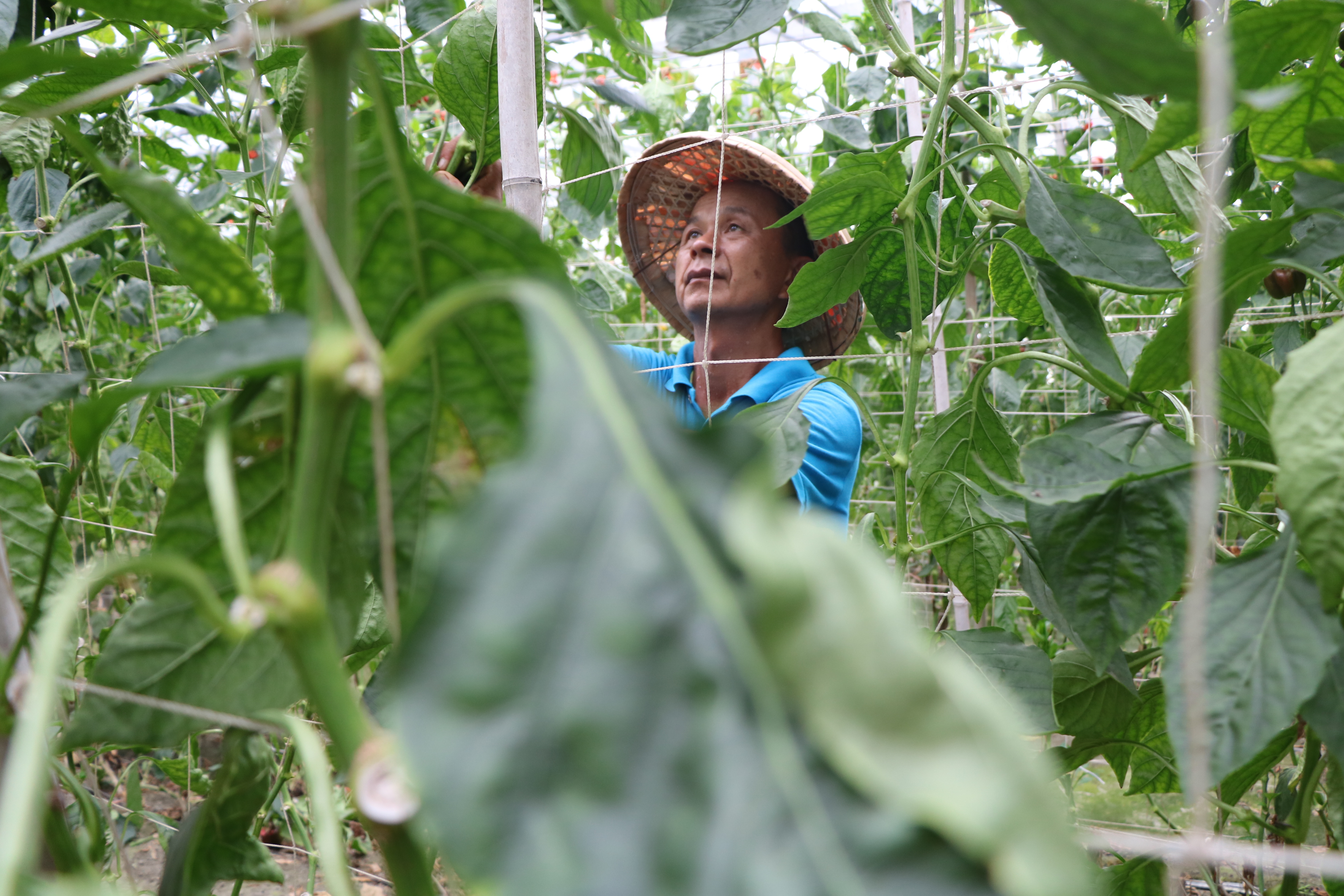 「安梅農場」以溫室本身的特性,利用慣行農法技術,以高溫解決病蟲害問題。 (圖/攝影 傅有萱) 數位轉型成趨勢 待政府領頭翻轉農業現況