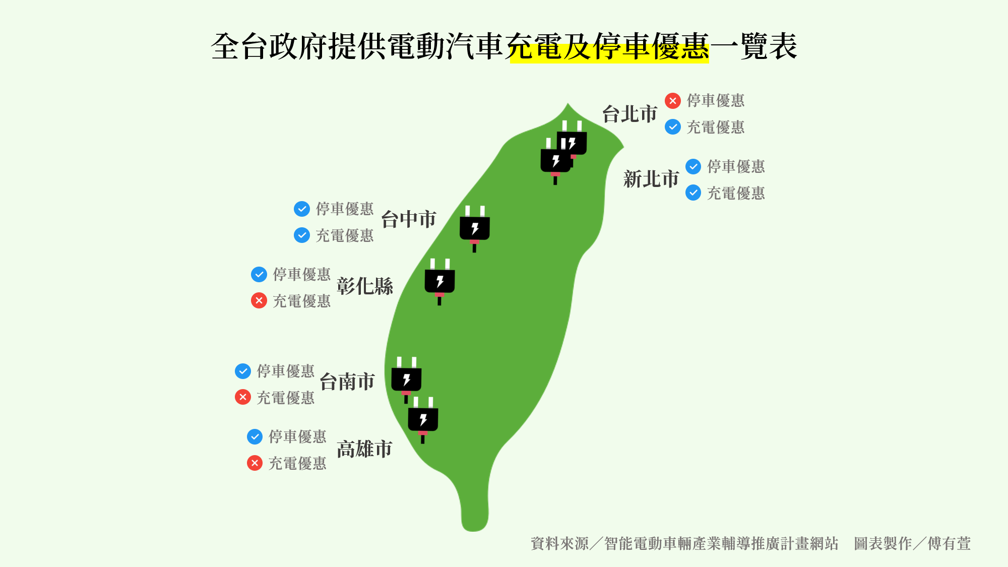 此外,以台北市為例,撇除特斯拉公司設置的專用站點,公有的充電停車格設置以公共停車場為主。Andy老爹提到,充電樁車位經常被燃油車佔用,且各縣市針對充電收費的規則也各有不同,有待整合。