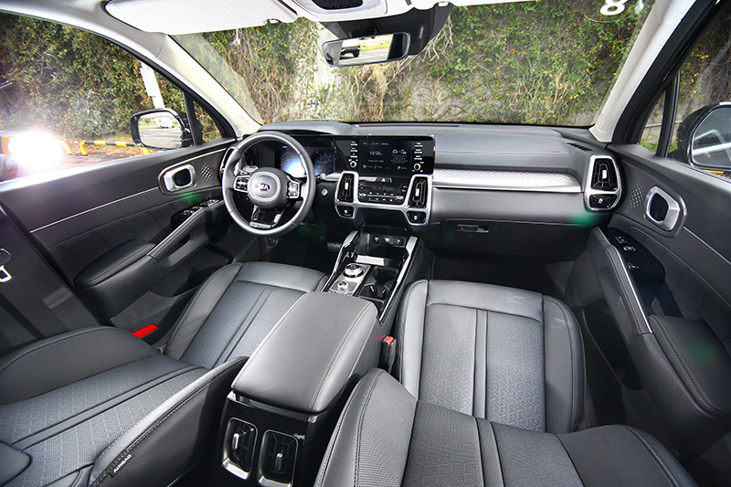 All-new Sorento不僅重新定義未來Kia的家族風貌,全新打造的內裝設計,更完美詮釋豪華旗艦休旅的尊榮質感。與外型的設計語彙如出一轍,All-new Sorento以簡潔俐落、剛中帶柔的筆觸,刻畫出更具立體層次的環繞式駕駛艙,刻意向前座乘客趨近的中控台鋪陳,也讓日常操作更加方便就手。All-new Sorento的內裝用料以精緻細膩的材質,交錯運用3D花紋金屬質感飾板與鋼琴烤漆,並搭配真皮座椅與可依駕駛心情更換的7色可調式氣氛燈,豪華旗艦休旅的尊榮車室質感油然而生。強烈的先進科技座艙風格,則是All-new Sorento車室讓人印象深刻的另一特色。全新的12.3吋整合智慧型全數位儀表板,讓駕駛可更直覺輕鬆地閱讀各項行車資訊並完成車輛設定,8吋多媒體影音觸控系統,不僅可支援分割畫面且具有聲控功能,並同持支援Apple CarplayTM / Android AutoTM,讓乘員在移動過程中也不錯失重要資訊。