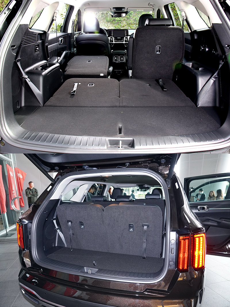 不論是六人座或七人座車型,All-new Sorento的第二排座椅,均配備一鍵傾倒滑移功能,即便是家中的長輩或孩童,也能輕鬆優雅地操作第二排座椅收折。此外,All-new Sorento對每一位乘客的細膩貼心,也體現在空調系統的設計;除了搭載雙區自動恆溫空調外,高達8具的前座冷氣出風口、第二/三排專屬出風口,與第三排專屬可調風量調節,即便是對應夏季炎熱的台灣氣候,依然能保有全車出色的冷房效率。在空間的運用上,All-new Sorento第三排座椅後方擁有達187L的置物空間,若將第二/三排座椅全數傾倒收納,行李廂空間最大更可擴充至2,056L,彈性的配置讓車主可輕鬆應付多元的空間需求。