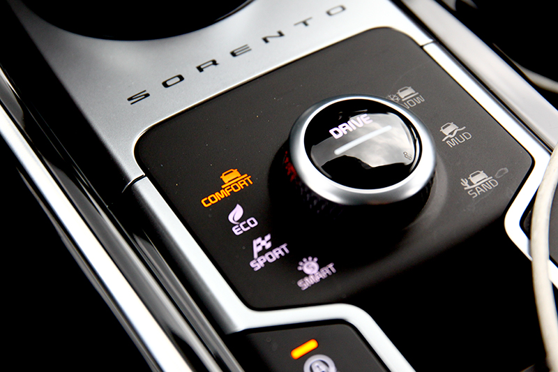 All-new Sorento不僅安全配備全面進化,在操駕上也提供駕駛更多選擇;可依照個人駕駛需求調整的Drive Mode 可變行車駕馭系統,內含Comfort舒適/Eco節能/Sport運動/Smart智慧等4種駕駛模式,旗艦版AWD版本更增加Terrain Mode地形行車駕馭系統,分別提供Snow雪地/Mud泥地/Sand沙地3種地形模式,讓駕駛在面對各種不同路面狀況,都能輕鬆駕馭迎刃而解。