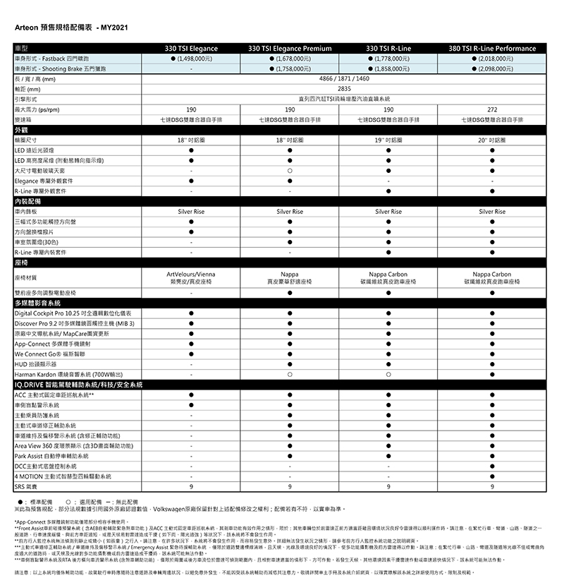 | 380 TSI R-Line Performance | 2,098,000元 |