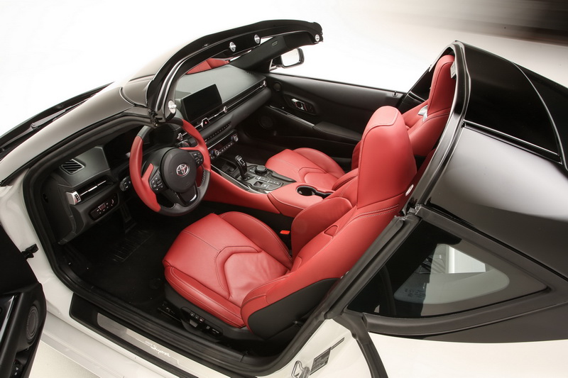 這次Toyota在SEMA改裝車展中展示的GR Supra敞篷版,同樣是以Heritage Edition為基礎改裝而來,並向1980-90年代A80 Targa Supra經典造型致敬的作品,車頂採用快拆式設計,拆卸後的車頂可收納在後行李箱內,並在車頂邊緣以3D列印飾版修飾,讓開篷狀態的車頂輪廓能更為一致,且不僅是切掉部分車頂那麼簡單,為了維持與原車相同的車體剛性,從引擎室延伸到A柱以及車艙後方的結構皆經過強化,讓這款特製敞篷車同樣擁有高強度的防護等級。