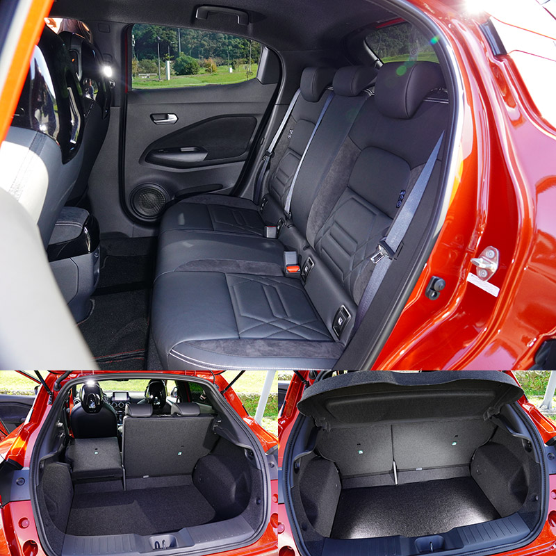 此外,新Juke藉由車身尺碼加大與增加軸距長度,車內空間明顯提升不少,加上視野開闊度也增加,徹底改善過去車內的侷促感與壓迫感,也是新Juke戰力提升的重要項目之一,就連行李廂基礎容積也有到422L,已經是達到中型掀背車的水準了。
