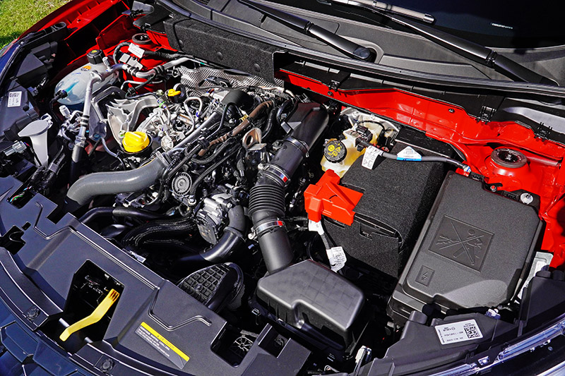 新Juke的另一個改款重點,就是全面搭載1.0升渦輪增壓三汽缸引擎,初期以單一規格動力取代上一代車款搭載的1.6升自然進氣與渦輪增壓引擎,也迎合當前的動力配置潮流;而該具1.0升渦輪增壓三汽缸引擎,在帳面數據水準]上大約與前代1.6升自然進氣引擎相當,可輸出116.9ps/5250rpm最大馬力,以及20.4kgm/1750~3750rpm最大扭力〈超增壓〉,同時變速系統也由CVT變速箱改七速為DCT雙離合器自手排變速箱,動力傳遞更為直接,不過整體來說,畢竟排氣量僅999c.c.,加上車重不輕,引擎低轉速時的動力勁道還是稍嫌不足,引擎轉速必須拉過2000rpm才會有比較充裕的力道,而且變速系統雖有設置方向盤換檔撥片,但卻未有純手排模式,因此駕駛控制檔位的自主性較低,無法有要利用檔位來維持轉速與動力。