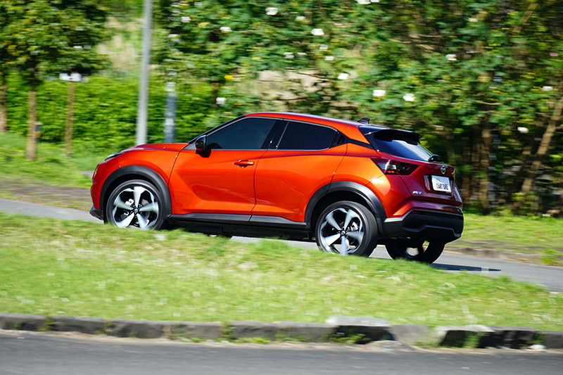 雖然動力不算突出,但在操控上卻有非常亮眼的表現,此代Juke採用Renault-Nissan聯盟共同開發的全新CMF底盤,整體懸吊設定保有一定的韌度,軟硬適中,轉向精準度與穩定性都相當高,讓Juke成為一輛底盤設地強過動力的車款,因為底盤強度夠,動力也不那麼猛爆,加上配置19吋的胎圈組,所以在山路中行駛,幾乎可僅用油門來控制車速,出彎時也不用擔心油門給過頭,會有過度猛暴的動力湧現,整體下來可以保持不低的平均速度,硬是要卯起來跑,還未必會跑出一些更強調性能的車款,在眾多CUV中算是頗有駕駛樂趣的一款。
