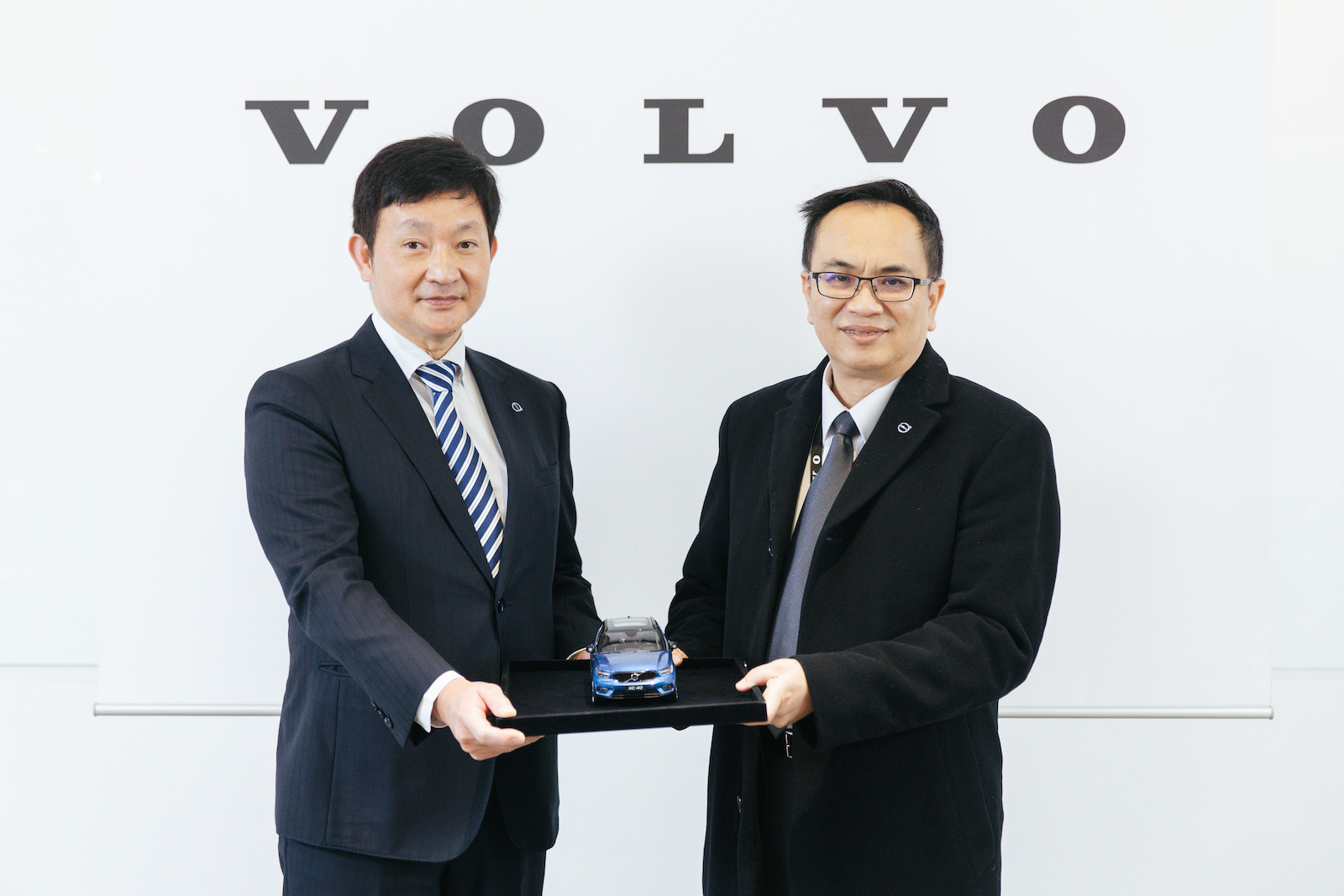 國際富豪汽車總裁陳立哲先生(右)代表歡迎匯勝汽車蔡奇峯董事長(左)加入Volvo 經銷體系。