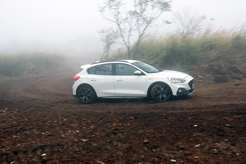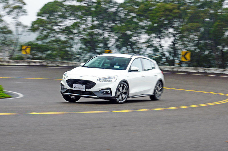 在實際試駕當天,可以感受到底盤較Focus ST-Line Lommel變得Q許多,對於路面碎震抑制效果增加,舒適性提升,但在山路上奔馳,進彎的犀利度卻沒有減弱太多,轉向反應依舊迅速,只有側傾會稍微明顯一些,後軸跟進速度稍稍緩一點點,但還是可以感受到原本優異的底子仍在,而且在改配Goodyear EfficientGrip Performance全天候輪胎,非Focus ST-Line Lommel配置的高性能胎,在溼地下卻還是有水準之上的抓地力,操控表現令媒體們感到驚艷,大家原以為重心變高與換裝輪胎後,操控與動態表現會有明顯落差,Focus Active卻完全沒有出現大家所預期的落差感,還是可以給駕駛者滿滿的信心。若說以百萬內中型車的平均操控表現為基準,Focus ST-Line Lommel的操控表現有90分以上,那Focus Active依舊可維持在85分的以上高分,就算是面對Focus ST-Line Lommel同等級的中型掀背車也不顯失色,更不用說市場中的CUV,跟Focus Active相比,根本不再相同的基準點上。