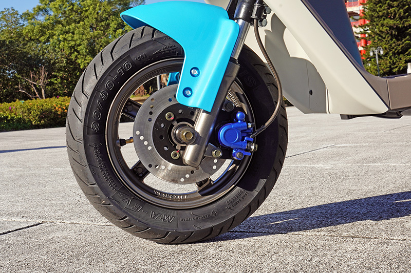 而且Ur2 Plus並沒有因為是代步用輕電動機車定位就在騎乘樂趣上妥協,採用全新的 MAXXIS 電動車高性能輪胎,搭配10吋鋁合金輪圈,提供良好抓地力,提供輕鬆好上手的騎乘感受,同時配有前後雙碟加 CBS 連動式煞車系統,具備良好且線性地制動能力,給予騎乘者更多的信心。