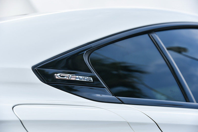 站在Peugeot 508車前,目光絕對不可能錯過這氣勢逼人的全新家族風貌。由燈組內向下延伸至保桿上的「獅牙晝行燈」絕對是車頭最明顯的特徵沒有之一,這趟試駕的508 GT(官方也稱為PureTech 225 S&S)以及PureTech 180 S&S GT-Line雙車型水箱罩散熱柵欄皆採用多點方格狀,與近期才整併完成的繁星聯盟Stellantis主視覺CI頗有異曲同工之妙。
