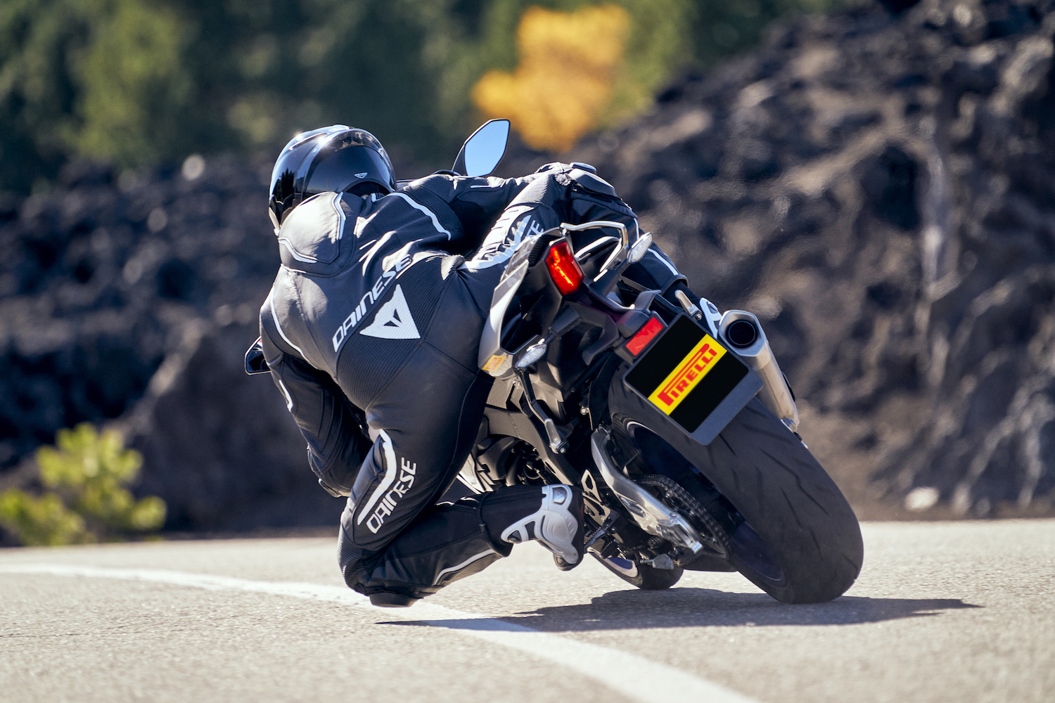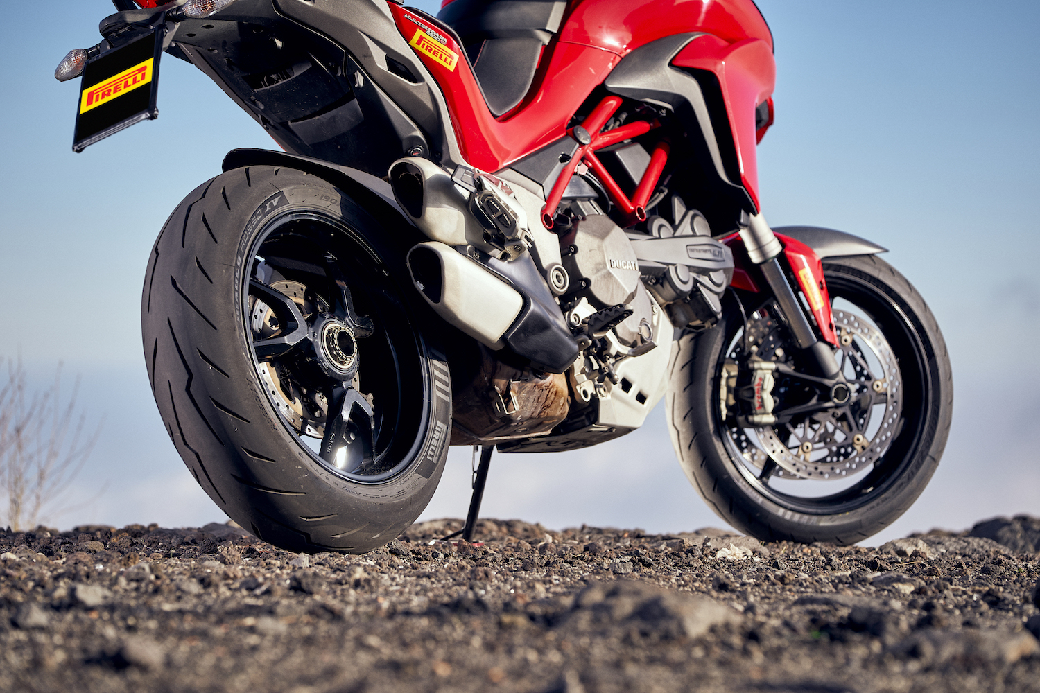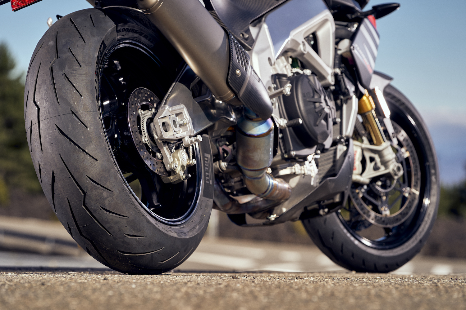 其餘的後輪尺寸(最高 190/50 ZR 17)採用人造絲結構,比其前身剛性更高。這種類型的胎體類似於前輪結構,為橡膠混合時預留更多的空間,以便更好地沿著其胎型調節剛性。前、後胎結構的組合可與最先進的電子控制系統完美配合,傳遞給騎士更多安心與精確操控手感。