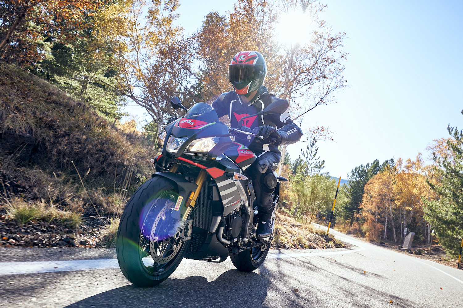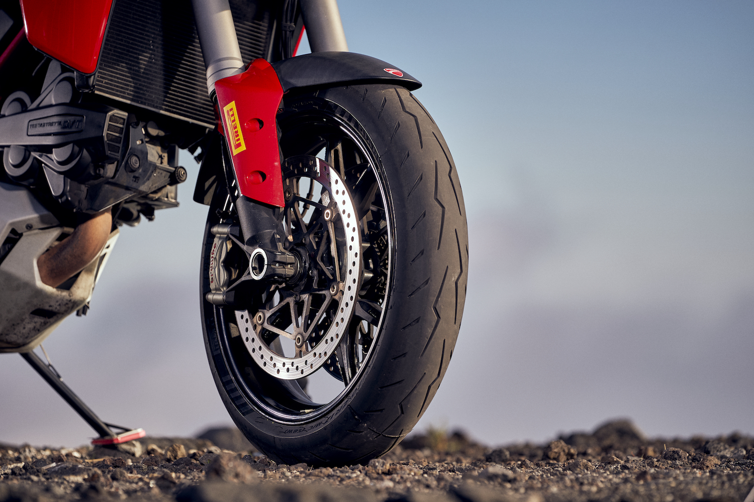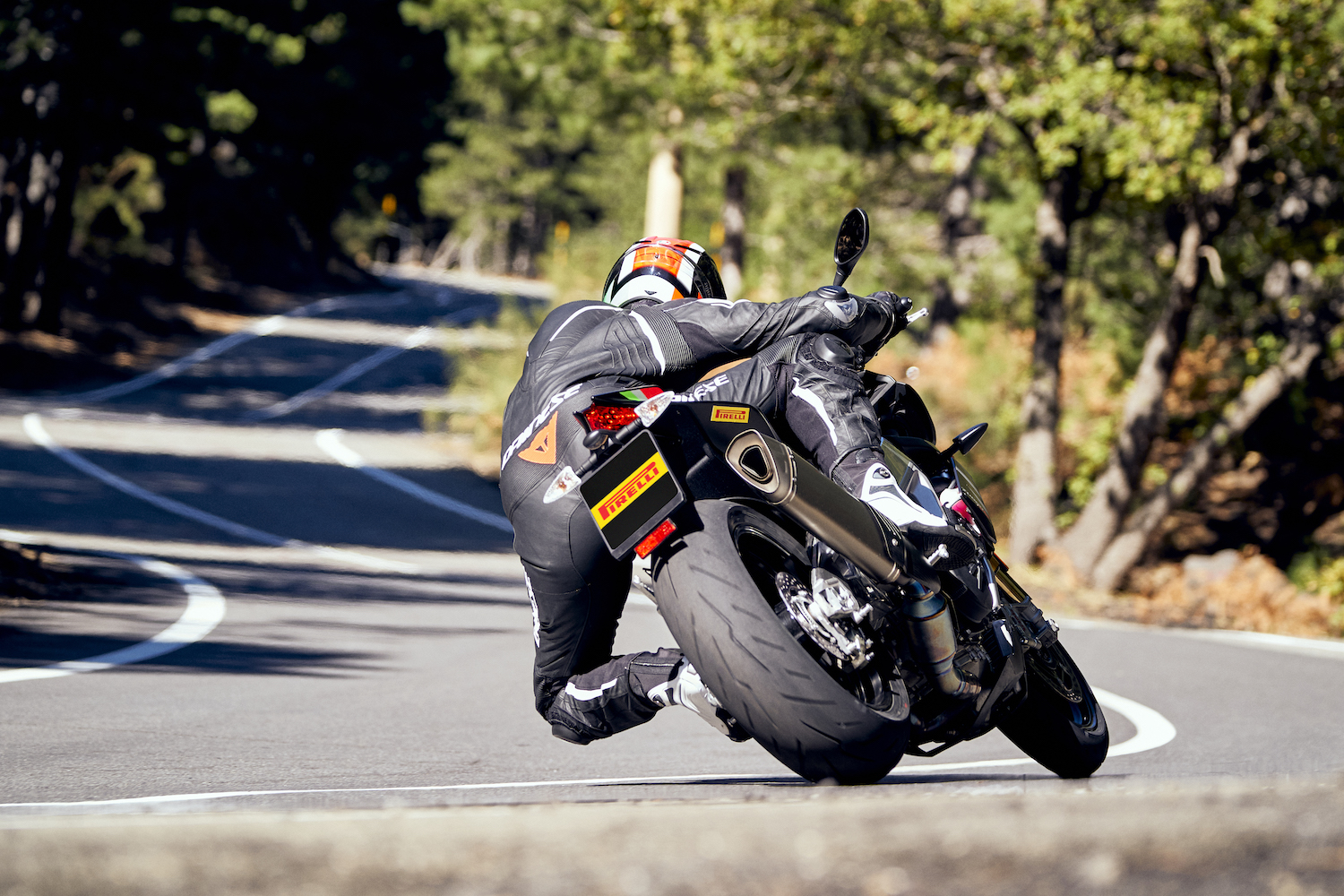 其餘的後輪尺寸(最高 190/50 ZR 17)採用人造絲結構,比其前身剛性更高。這種類型的胎體類似於前輪結構,為橡膠混合時預留更多的空間,以便更好地沿著其胎型調節剛性。前、後胎結構的組合可與最先進的電子控制系統完美配合,傳遞給騎士更多安心與精確操控手感。