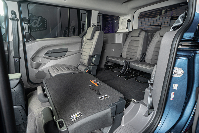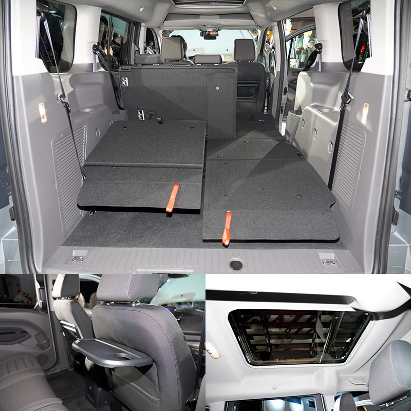 全新Tourneo Connect旅玩家專屬配置Fold Flat 百變座椅平整系統,第二排與第三排座椅具備精巧結構設計,使用者無需拆卸座椅,即可輕易創造完全平坦且寬敞的使用空間(322L至2,620L),並結合其六四分離/五五分離機制,可視使用需求,調整為16種以上的模式變化,為同級最靈活百變空間,收納多樣生活的可能性,其中第三排座椅更獨具巧思,具備前後滑移與椅背角度可調機能,第二排乘坐搭載便利摺疊桌,亦結合大面積電動車窗設計。天幕式全景天窗更提供無可比擬的視野,具良好採光性,創造多人共乘的舒適空間。
