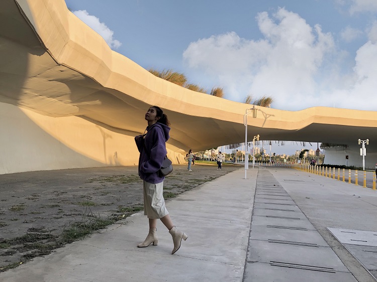 中央公園其實前身是台中水湳機場,為了打破過去水泥地舖面的跑道地貌,加了羅馬柱呈現另一種風格,地板上的小坑洞,像似月球表面的凹凸不平,是用來滯洪、減災、減碳的目的,整個公園都以生態第一為規劃目標,沒想到在公園裡也能成為羅馬柱女神,快來化身成森林系女孩。