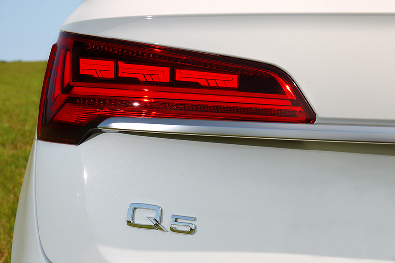 此次Audi Q5雖僅是小改車型,但於外觀、內裝配備甚至動力都有進化。 此次Q5即使是小改車型,但為給人耳目一新感受外觀方面也有進行明顯更新,首先Audi招牌盾型水箱護罩看似維持相同輪廓,但若比較則能發現小改後輪廓變得更加銳利鮮明,另外左右氣壩面積也變得更為寬闊霸氣,而最重要的就是頭燈除了修飾更為細扁營造銳利神韻,日行燈樣式及Edition One車型升級的Matrix LED矩陣式頭燈,則讓Q5在散發運動氣勢之餘也帶來更高科技含量。車尾也換上新的保險桿與下護飾板,尾燈也配置OLED燈組,並且內部燈組也提供三種樣式於購車時選擇,另外若後方車輛過於靠近時尾燈也會以全亮方式提醒後方車輛駕駛。