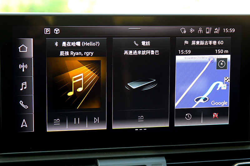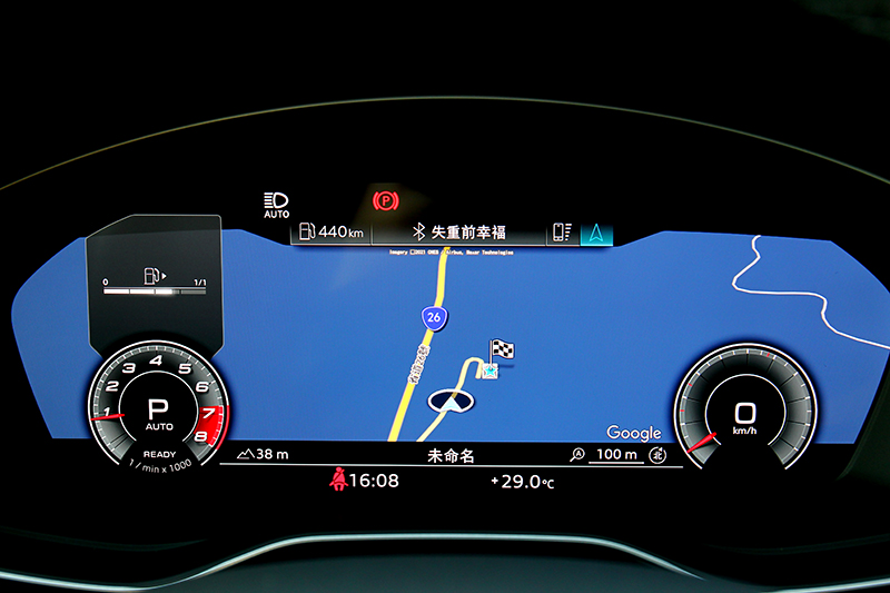 車室格局因非全新世代所以維持和以往相同設計,也因少了鋼琴飾板個人認為反而整體質感較為出眾討喜,不過在硬體配備方面小改Q5則導入更多科技系統。其中儀表方面全車系標配12.3吋數位儀表,能提供全螢幕與三種介面供選擇,中控系統也升級至10.1吋,並且採用最新MMI操作介面及支援Android Auto與無線Apple CarPlay,為符合無線Apple CarPlay便利性小改Q5也提供無線充電功能。另外因中控系統改由觸控操作,因此以往排檔桿前手寫板則取消規劃為小型置物空間。